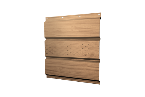 Описание товара: "Софит металлический центральная перфорация 0,45 Print Elite с пленкой Honey Wood TwinColor"