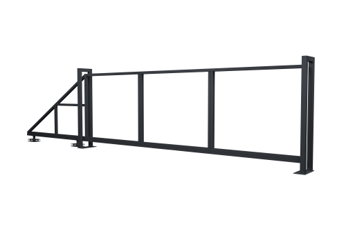 - Роликовая система (Alutech для откатных ворот), в которую входят: опоры роликовые 2шт, шина направляющая, ролик опорный, улавливатель нижний, улавливатель верхний, шина с поддерживающими роликами, подставка для роликовых опор 2шт, заглушка балки торцевая, анкерные болты.